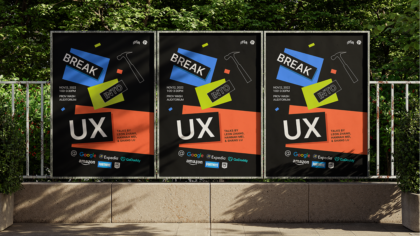 As a Co-Lead designer, I worked with Design Team to create promotion graphics for Break into UX Panel event (prints, posters, social media graphics).
