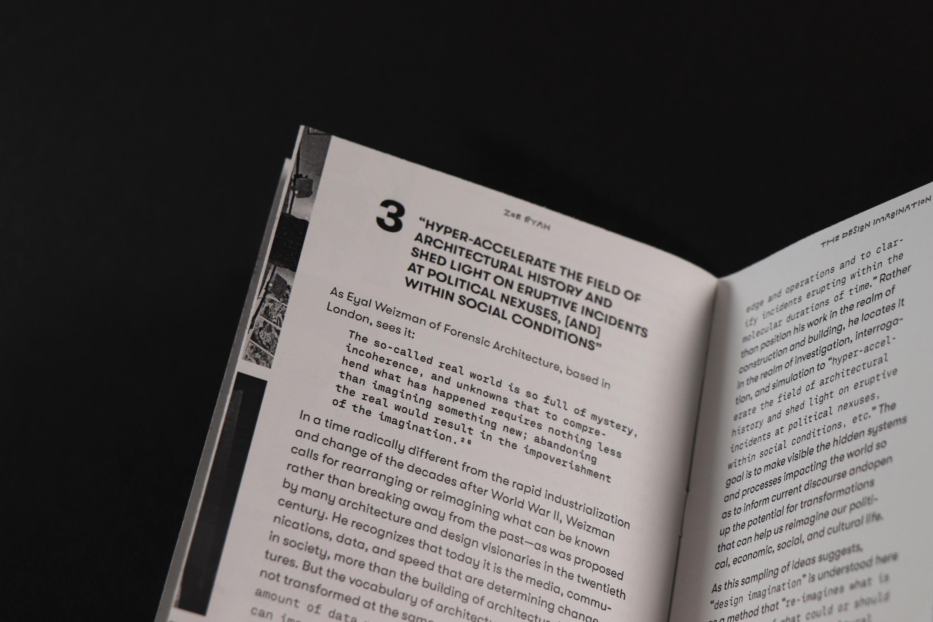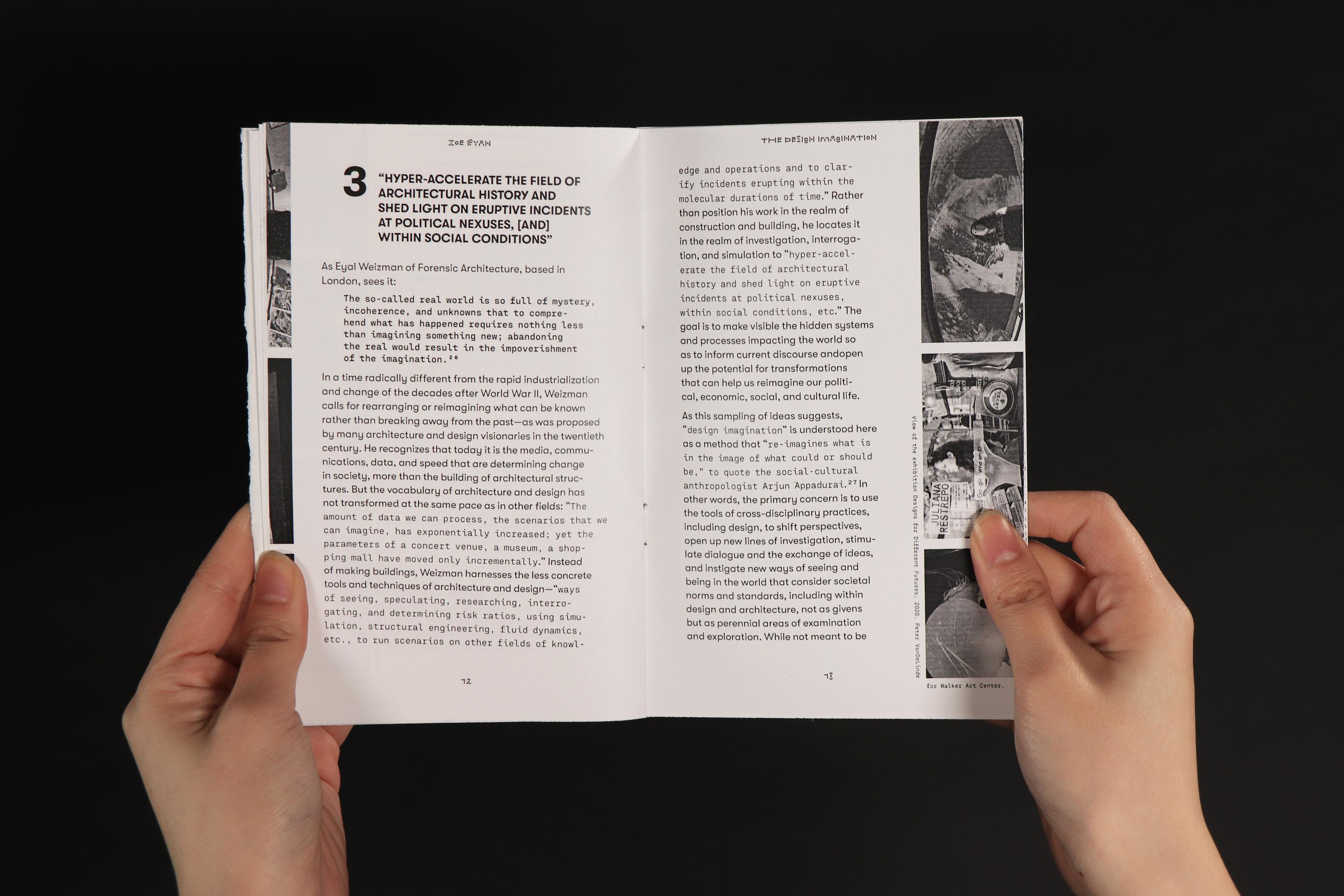 The Design Imagination is a monochromatic book about The Design Imagination written by Zoë Ryan. It questions the readers what design would be in the future and what we are expecting. I also created a website with interactions that reflects the visual system from the book. These formats present different reading experiences.