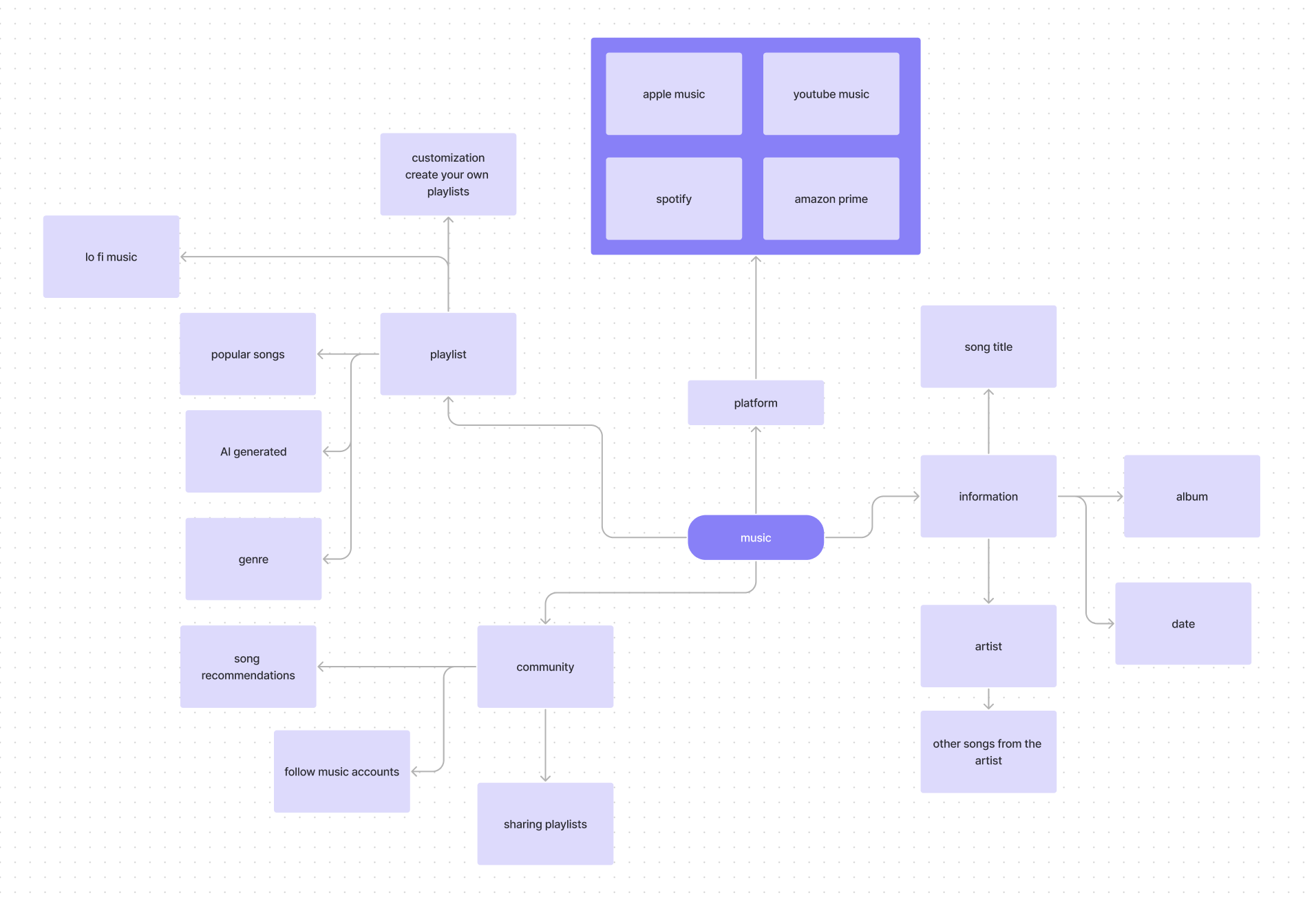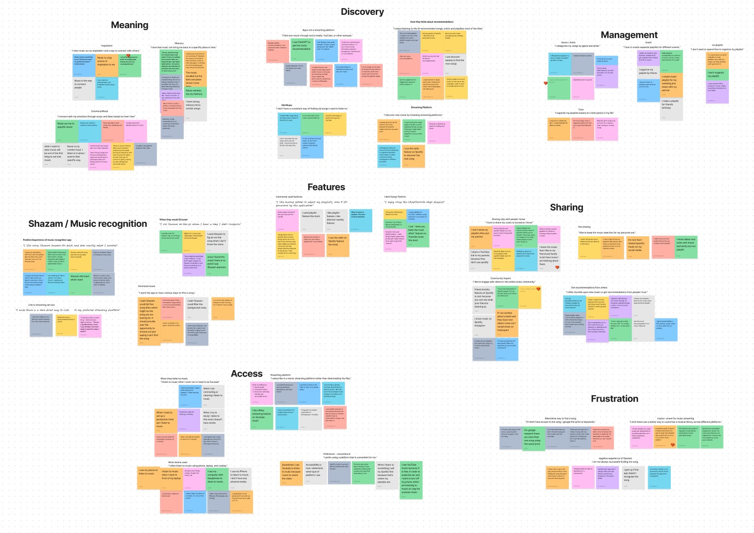 From user interviews, we were able to identify user’s behaviors, needs, and frustrations and also gained insights into various perspectives of their interactions with music including listening, sharing, and collecting.