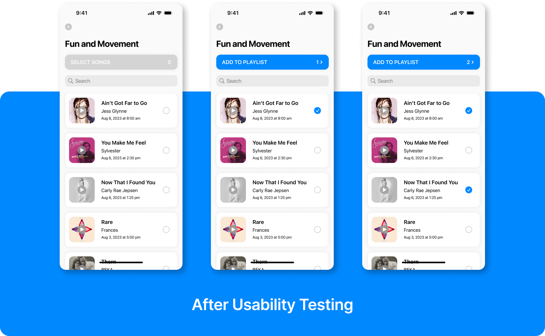 3 out of 4 users were confused with the "add to playlist" section as a button due to its blue color. Based on the results, we decided to use that as a button and removed the "save" button.