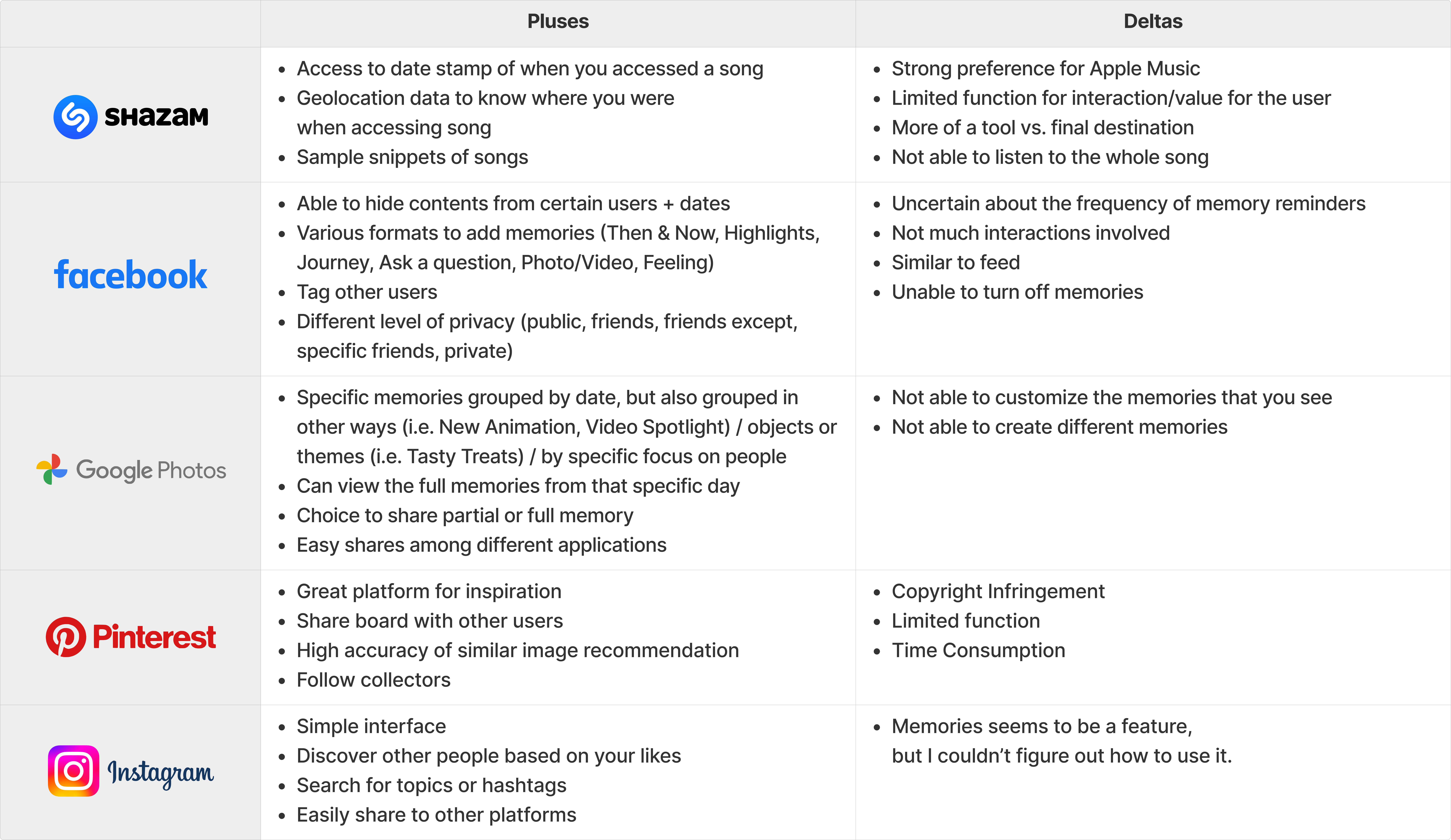 We began with mind maps and various types of research including heuristic evaluation, user interviews, competitive & comparative analysis (task analysis, feature inventory pluses & deltas), and secondary research.